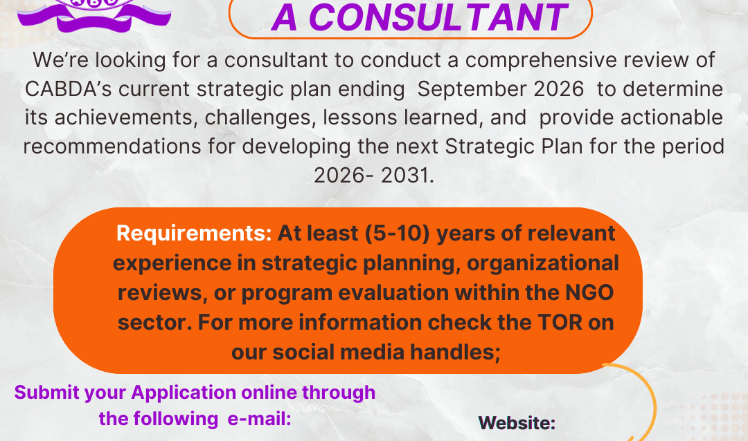 Community Asset Building and Development Action (CABDA) is seeking to recruit a consultant to conduct a comprehensive review of its strategic plan ending September 2026. The assignment will require the…